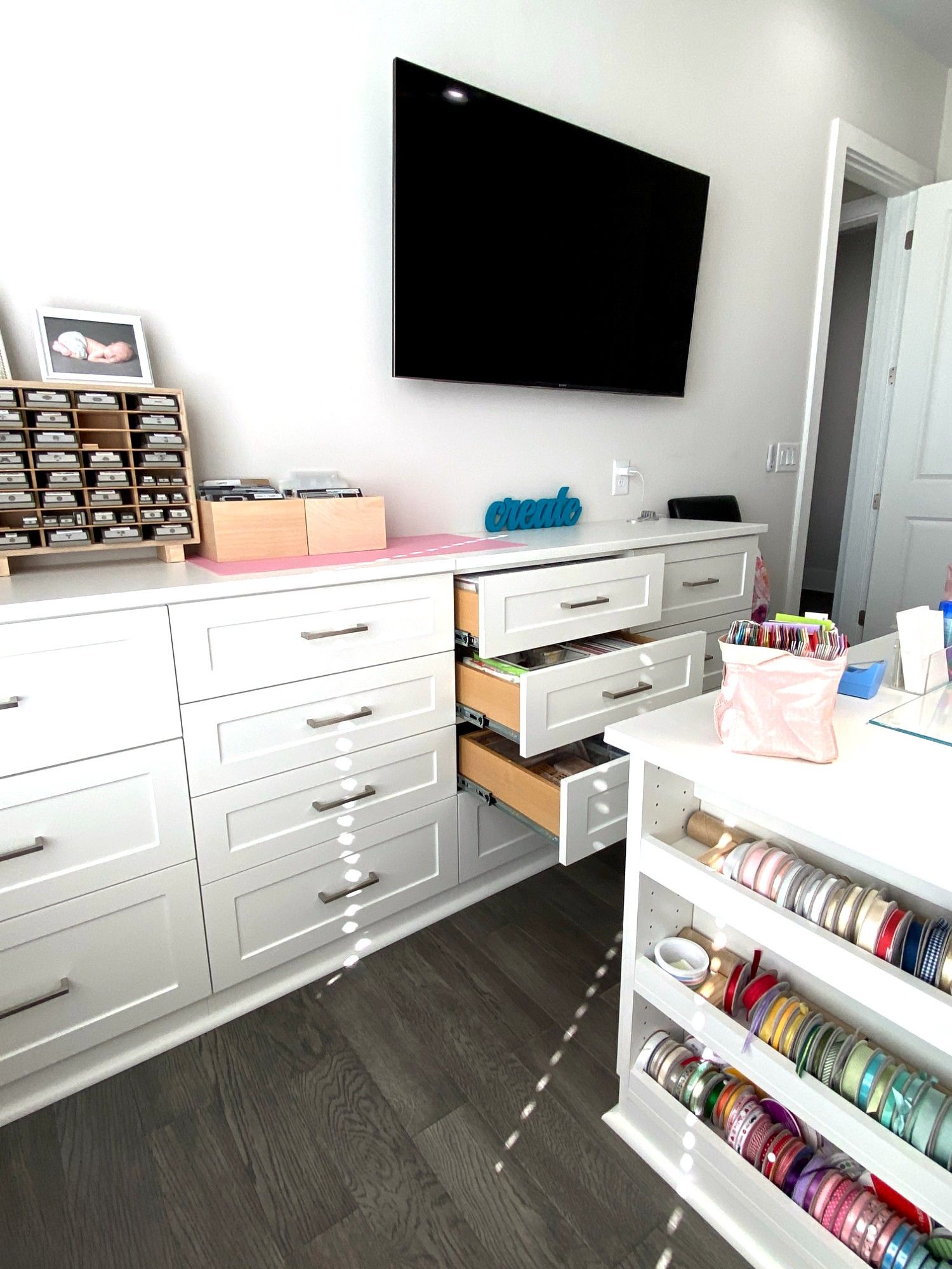 A craft room is designed to be a fun, inspiring and functional space that saves time and keeps everything within reach. With the right custom storage solution, your craft room becomes more than just a workspace: it transforms into a creative haven where you are inspired and organized. Whether you're scrapbooking, sewing or tackling your next DIY project, a thoughtfully designed craft room will help you stay focused on what you love most: creating and crafting.